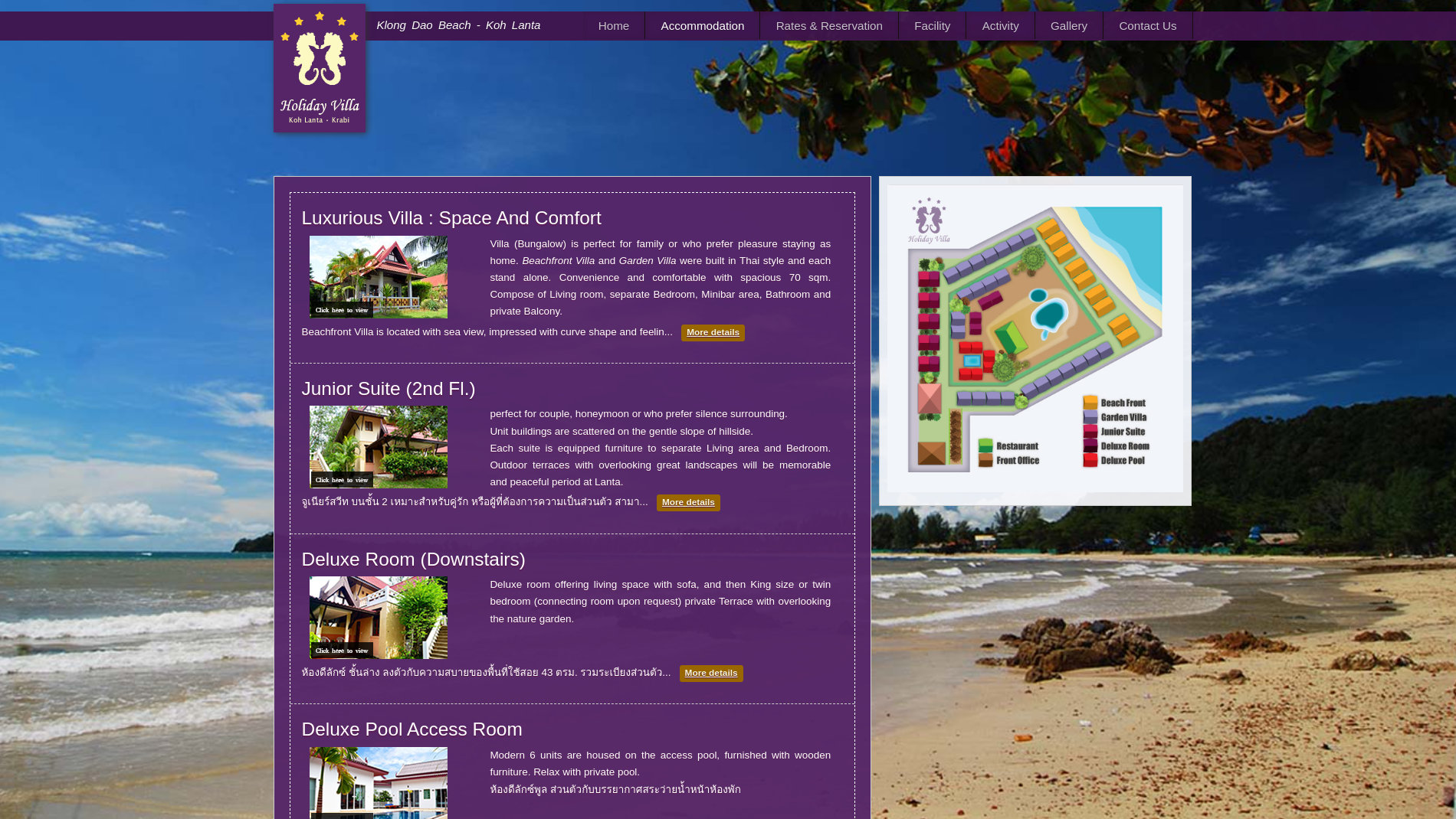 Holiday Villa is a Resort located on a private stretch of land close to Klongdao beach on Koh Lanta Yai in Krabi. The area is very typical of the beautiful scenery found on the Andaman Coast. The villa hotel itself is hidden within the sprawling wonder of the surrounding landscape, where a real sense of relaxation and tranquility can be found to create peace of the mind amongst all guests.