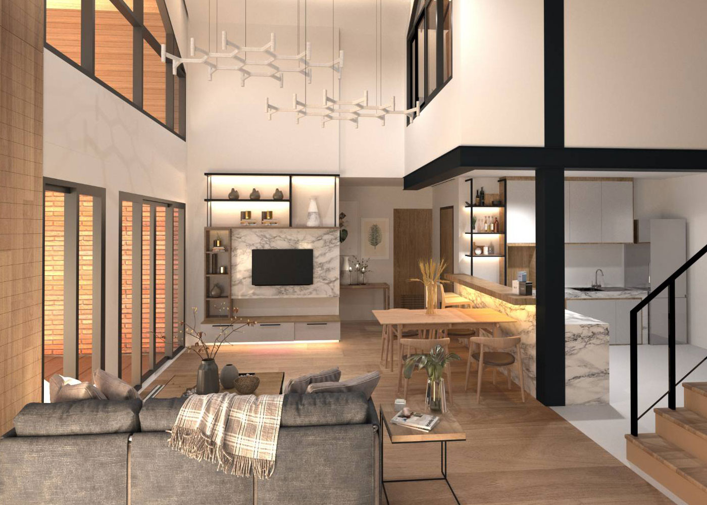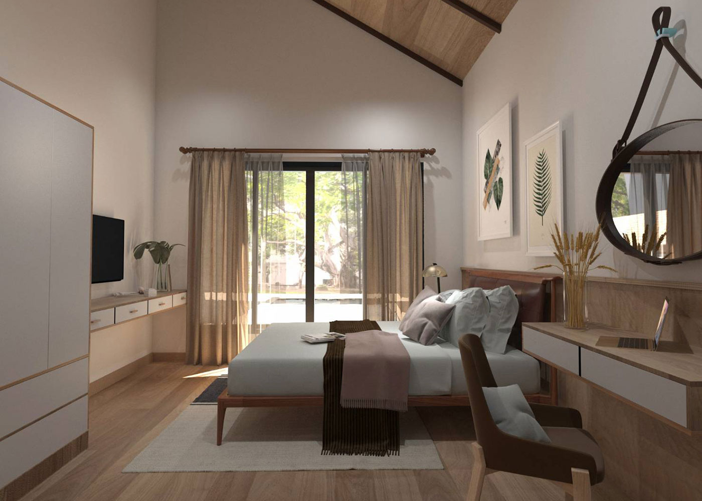 The pool villa Type A has a total surface of 189.1 Sq.m. with 122.4 Sq.m for the villa and 66.7 Sq.m. for outdoors. The villa includes a living and dinning room, a kitchen, 3 bedrooms, 2 bathrooms and a terrace. The outdoor area includes a carpark, an entrance, a pool deck and the pool itself.